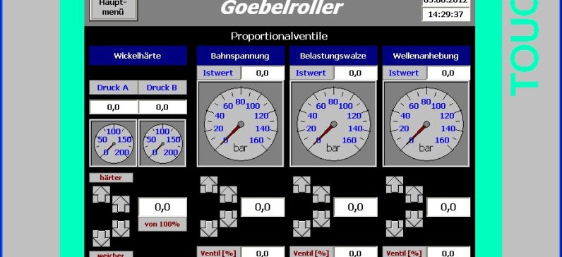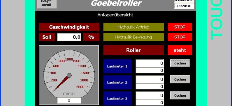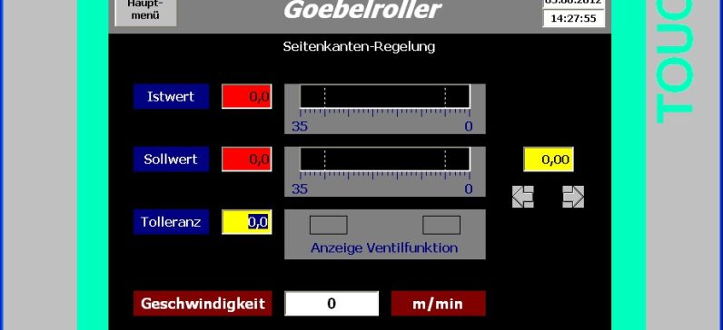 » Erneuerung der kompletten Steuerung für hydraulisch angetriebenen Papierrollenschneider» Konzeption, Programmerstellung, Inbetriebnahme» Visualisierung mit TP270» Anlagenbedienung mit diversen PP17, Bussystem Profibus-DP